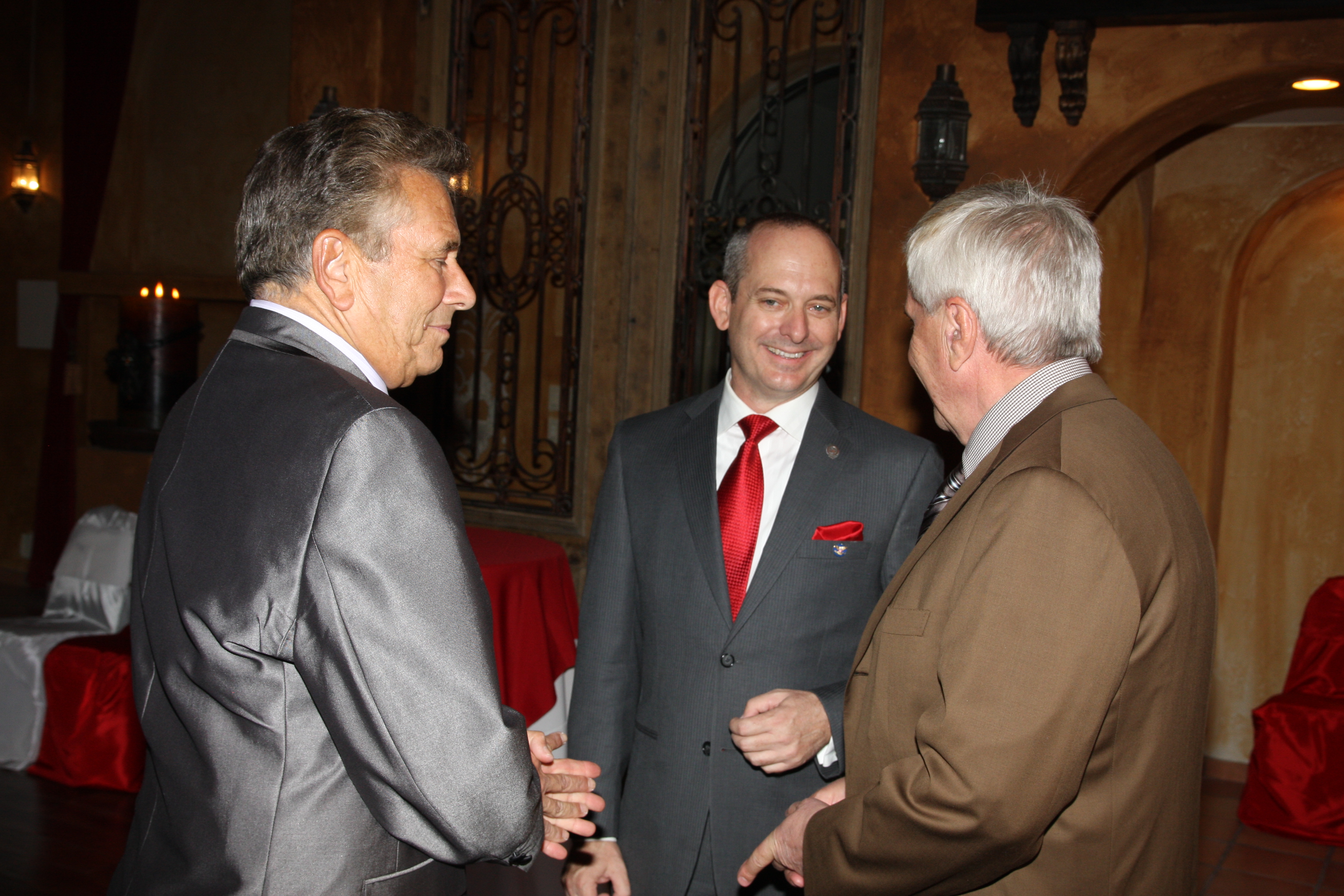 Consul Warren greets Las Vegans Steve Schorr and Ambassador sig Rogich